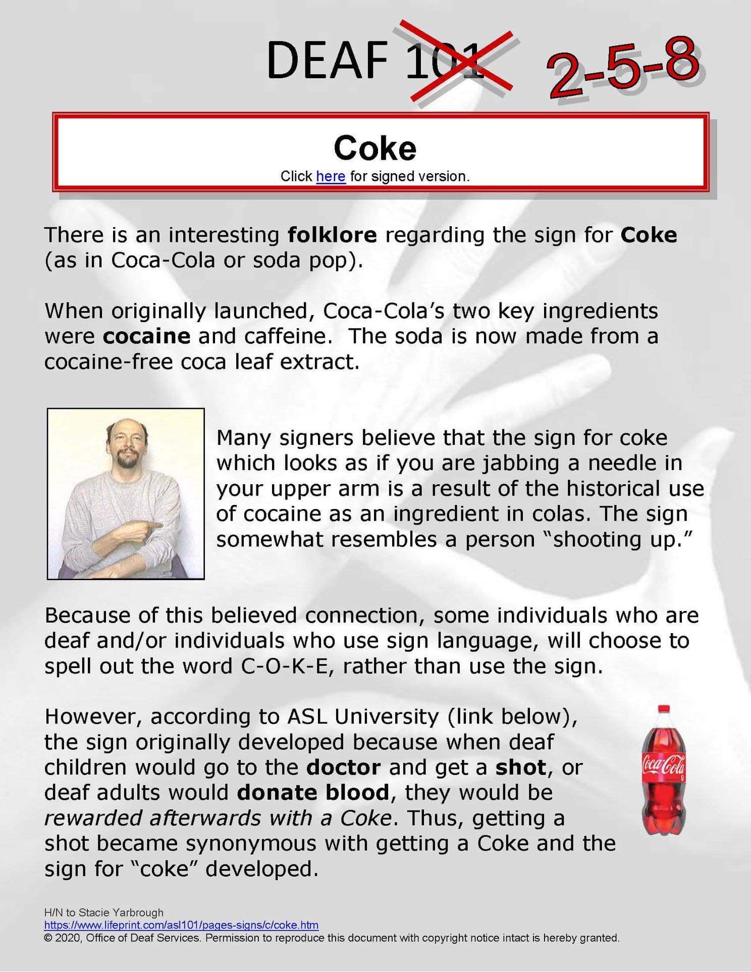 Signon On Twitter Ever Wonder About The Etymolmogy Of The Sign For Coke Asl Lifeprint Https T Co Epgomkznej Twitter
